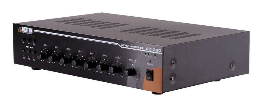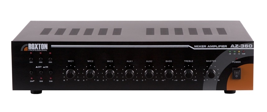 Зональный усилитель ROXTON AZ-360 мощностью 360 Вт это решение начального уровня для построения распределённых систем речевого оповещения и музыкальной трансляции. В первую очередь он предназначен для озвучивания помещений, разбитых на несколько зон оповещения. Два линейных и четыре микрофонных аудиовхода на задней панели дают широкий выбор источников аудиосигнала, а дополнительные низкоомные аудиовыходы позволяют подключать к усилителю акустические системы бытового и профессионального уровней. Отдельно стоит отметить встроенный селектор зон, коммутирующий высоковольтные выходы усилителя с шестью линиями громкоговорителей. Это даёт возможность выбора, в какие зоны транслировать один аудиосигнал. Помимо этого, ROXTON AZ-360 оборудован регуляторами громкости и тембра выходного аудиосигнала, что позволяет получать требуемую выразительность и громкость звучания транслируемой музыки и речи. Сочетание только необходимых функций, простоты использования и компактного размера сделали ROXTON AZ-360 незаменимым при озвучивании кафе, баров, ресторанов, административных и офисных помещений.