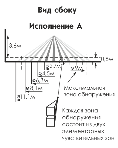 угол зоны обнаружения в горизонтальной плоскости: 360°