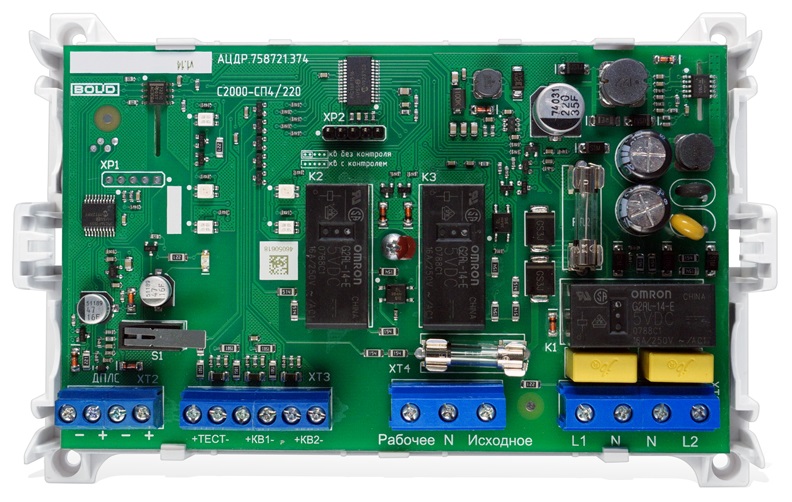 С2000-СП4/220 исп. 01 блок сигнально-пусковой адресный Болид; 2 релейных вых.с контрол.; U-коммут.220В; I-коммут.3 А; 3 контр.зоны; питание по ДПЛС; тампер; IP20; t-раб.-30...+55°C; 156х107х39 мм.