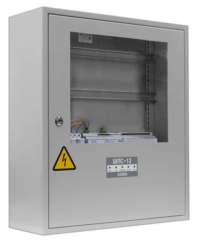 ШПС-12 исп.21 шкаф пожарной сигнализации; с резервированным источником питания; выходное напряжение от сети 13,6±0,6; две изолированные линии интерфейса RS-485; 7 выходных каналов 12В; IР41; 700x600x225 мм; 48 кг.