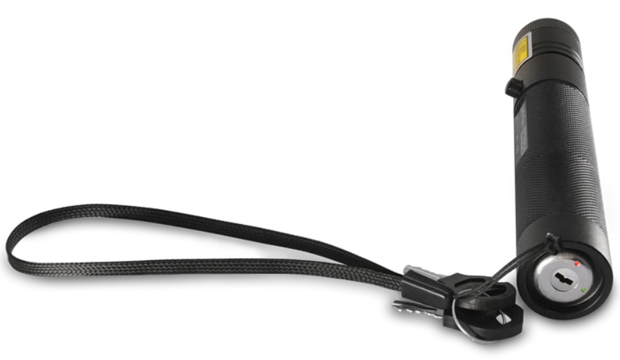 Лазерный тестер для проверки пожарных извещателей; дальность действия 10 м, класс опасности лазерной аппаратуры 3R, длина волны излучения 650 нм, P-изл.5 мВт; элемент питания 3.7 В (18650); t-раб.-10...+40°С, 22х141 мм.