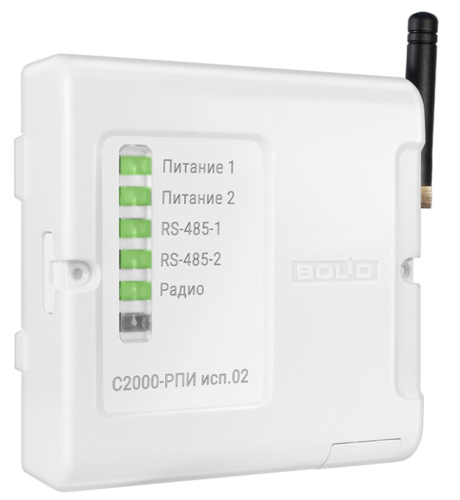 С2000-РПИ исп.02 радиоповторитель интерфейсов Болид; 25 мВт; RS-485; -30...+50 °С; 102х107х39 мм; 0,2 кг.