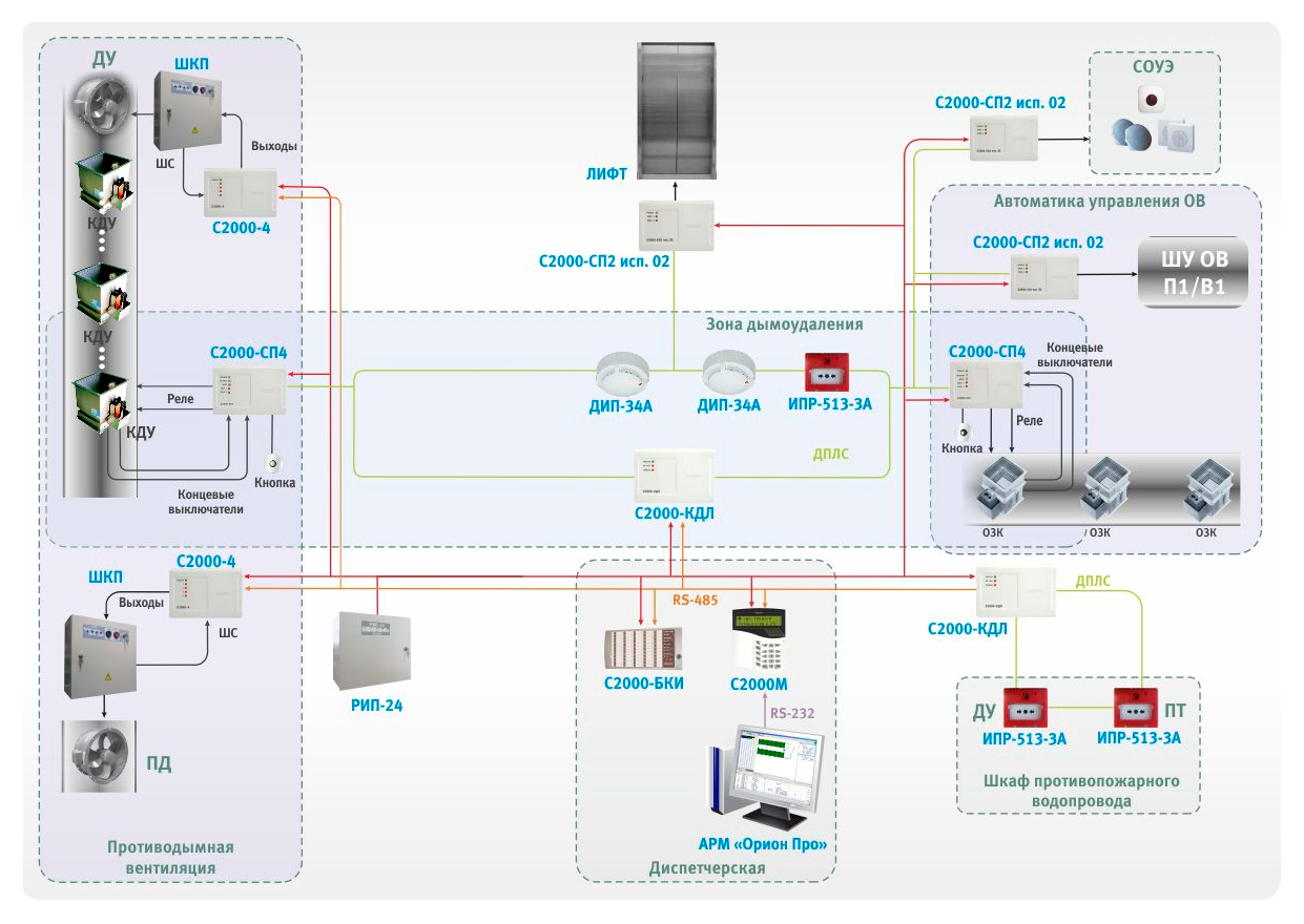 Применяется как часть составного прибора управления в системах пожарно-охранной сигнализации, поддерживающих двухпроводную линию связи, совместно с контролером “С2000-КДЛ” (версии 2.01 и выше) или “С2000-КДЛ-2И” (версии 1.00 и выше) и пультом контроля и управления «С2000М» в составе ИСО "Орион".