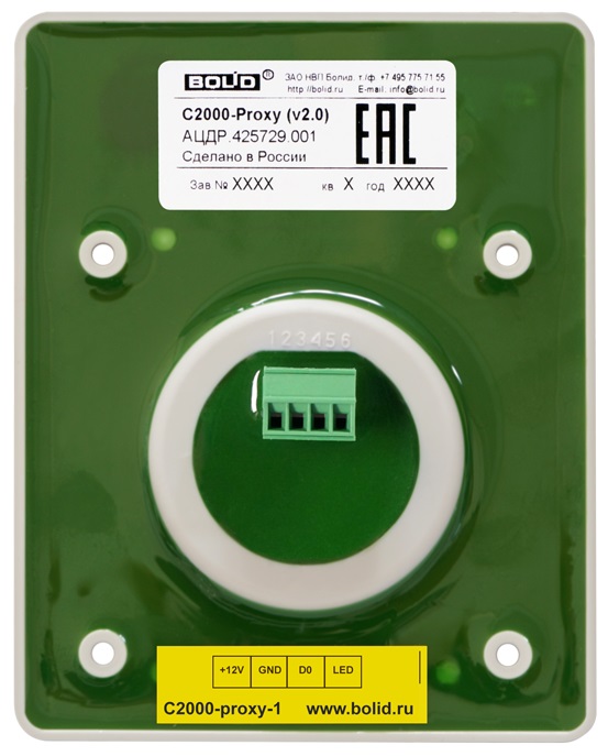 "С2000-Proxy" предназначен для считывания кода с идентификационных карточек и передачи его на приборы приемно-контрольные или контроллеры СКУД.