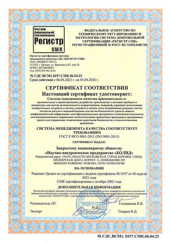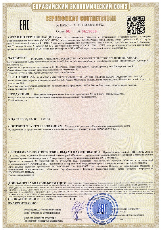 Средний срок службы извещателя: 10 лет