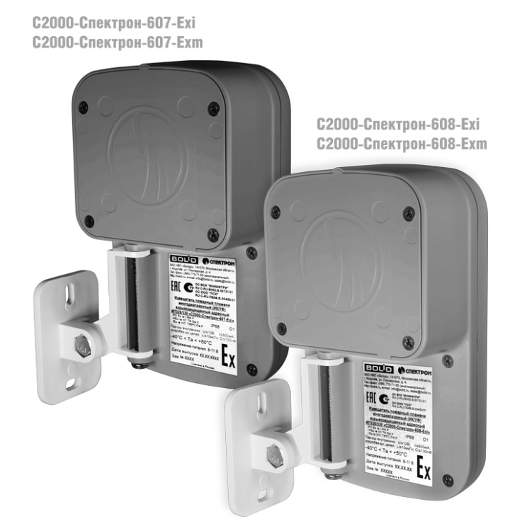 С2000-Спектрон-607-Exi извещатель пожарный пламени многодиапазонный адресный Болид; взрывозащищенный для работы с С2000-КДЛ; 0ExiaIICT4 X; до 30 м; угол обзора 120°; U-пит.8...11 В; -40...+55 °С; 158х84х73 мм; 0,4 кг.