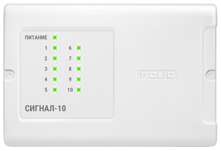 Блок приёмно-контрольный охранно-пожарный "Сигнал-10" предназначен для совместного использования с сетевым контроллером (пультом контроля и управления "С2000М" либо компьютером с установленным ПО АРМ "Орион") в качестве совмещённого приёмно-контрольного прибора и прибора управления в составе комплексов технических средств: