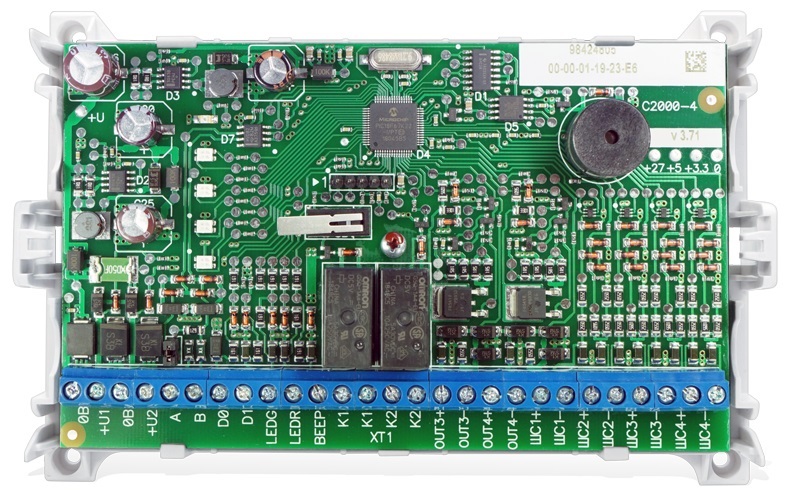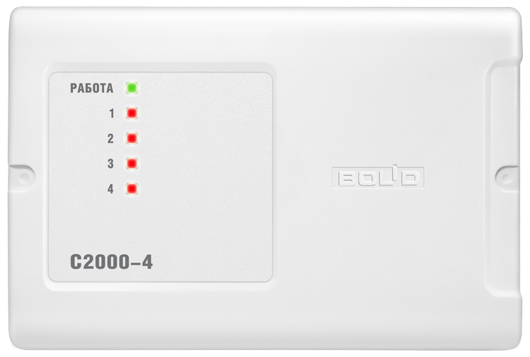 С2000-4 прибор приемно-контрольный Болид; вход Touch Memory (управление взятием, снятием, доступом – до 512 ключей); буфер – 255 событий; интерфейс RS-485; напряжение питания – от 10,2 до 28 В; IР40; -40 до +50 °C; 156х107х39 мм; 0,3 кг.