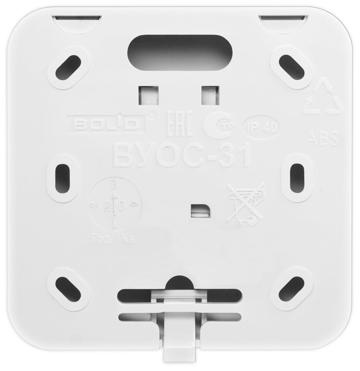 ВУОС-31 выносное устройство оптической сигнализации Болид; 2 входа питания; макс. допустимый ток 10 мА; -400...+60°С; 75х75х22 мм; 0,04 кг.