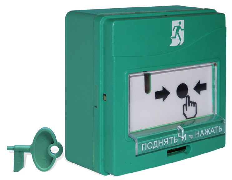 Зелёный цвет корпуса и понятная пиктограмма позволяют легко отличить его от ручных пожарных извещателей и УДП с другим функциональным назначением