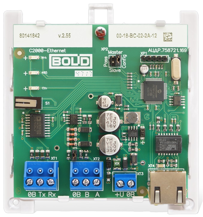 С2000-Ethernet преобразователь интерфейса Болид; RS-232/RS-485 в Ethernet; IР20; -30 до +50 °C; 102х107х39 мм; 0,2 кг.