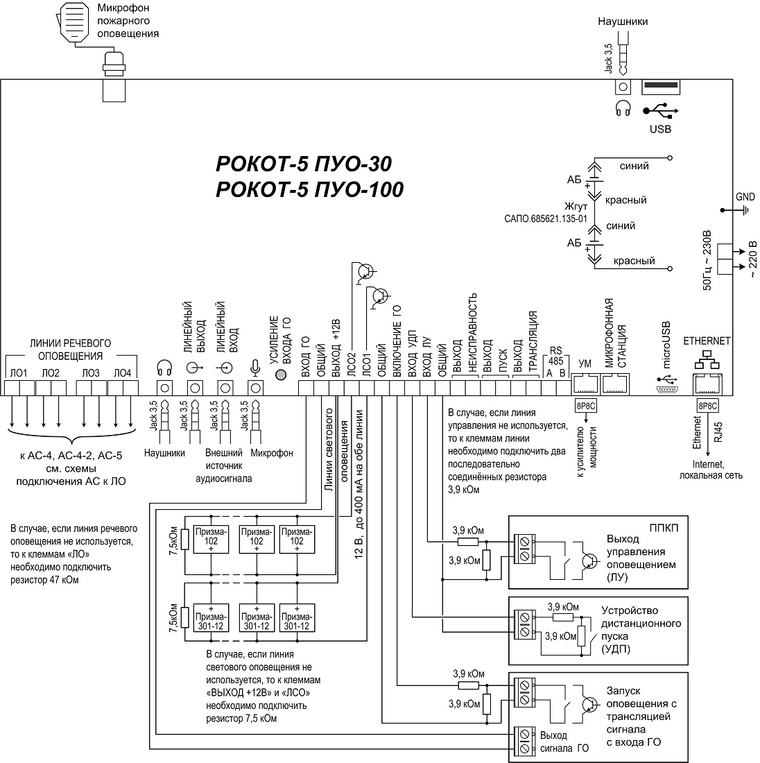 Система речевого оповещения пожарная «Рокот-5» предназначена для трансляции речевой информации и предварительно записанных речевых сообщений при возникновении пожара или других экстремальных ситуаций.