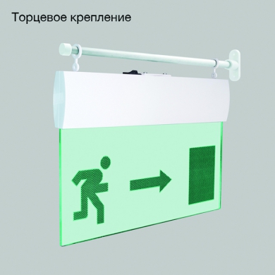 Торцевое крепление позволяет устанавливать изделие торцом к стене. Особенно подойдет для табло с пиктограммой «Направляющая стрелка» или «Направление к эвакуационному выходу».
