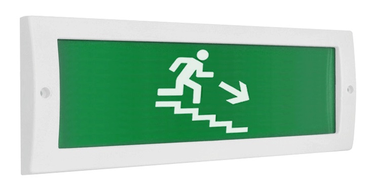 Молния-12 "Человек по лестнице вниз вправо" световое табло; плоский корпус на защелке; 9-13,8 В; 20 мА; IP52; -30...+55 °С; 103х19х304 мм; 0,22 кг.