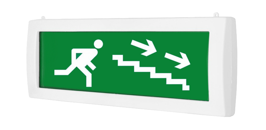 Молния-2-12 "Человек по лестнице вниз" двухстороннее разборное световое табло; потолочное исполнение; предусмотрена возможность крепления к стене и потолку дополнительным кронштейном. 9-13,8 В; IP52; 103х30х304 мм; -30...+55 °С; 0,22 кг.