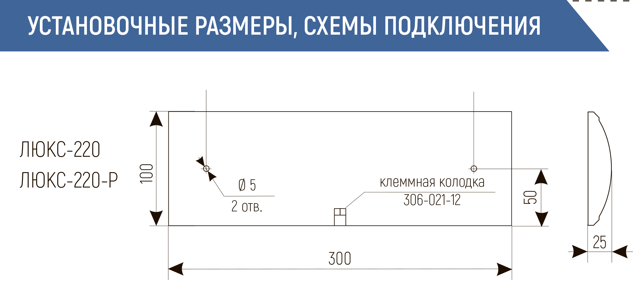 Габаритные размеры, мм: 300 х 100 х 25
