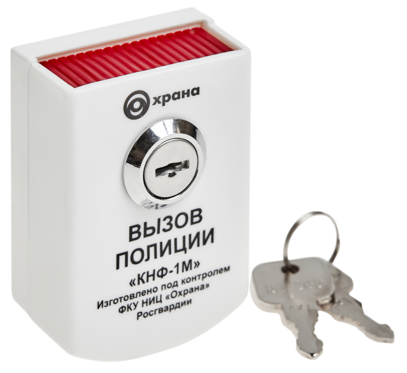 КНФ-1М кнопка тревожная (ИО 101-2); извещатель охранный ручной точечный электроконтактный: пониженный уровень шума; защита от вскрытия корпуса; защита от ложных срабатываний; 0.001…0.250 А, 1…72 В; -30…+50 °C; 77х57х30 мм; 0,11 кг.