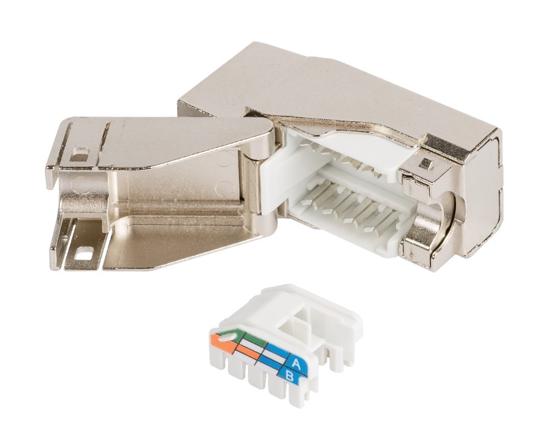 Коммутационный модуль NMC-KJSD2-NT-MT (кат.5е) выполнен в полностью экранированном корпусе из цинк-алюминиевого сплава. Экран кабеля зажимается между откидной крышкой модуля и встроенной в корпус подпружиненной клипсой. Такая конструкция обеспечивает постоянный и плотный контакт с экраном, не ухудшающийся со временем.