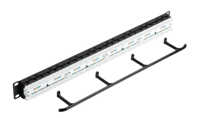 Коммутационные панели (патч-панели) предназначены для разделки в них кабелей различных подсистем СКС и подключения отдельных составляющих сети друг к другу коммутационными шнурами.
