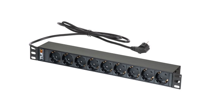 TLK-RSC09-M-04-BK блок электрических розеток 19" NIKOMAX; 9 гнезд Schuko; 16 A; горизонтальный; алюминиевый корпус; IP20; 1,5 мм2 (16AWG); 220-250 В; 16 А; 1 кг.