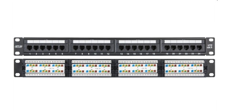 EC-URP-24-UE2 коммутационная панель NETLAN; 19"; 1U; 24 порта; Кат.6 (Класс E); 250МГц; RJ45/8P8C; 110/KRONE; T568A/B; 0…+70 °С.