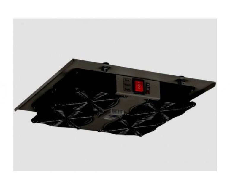 TLK-FAN4-TERM-I-BK вентиляторный блок TLK; для шкафов серии TFI-R и TWI-R глубиной от 450 мм; 4 вентилятора с терморегулятором; без шнура питания; черный; листовая сталь 1 мм; 220 В, 50Гц; 44 Вт; 48 дБ; 0.2 кг.