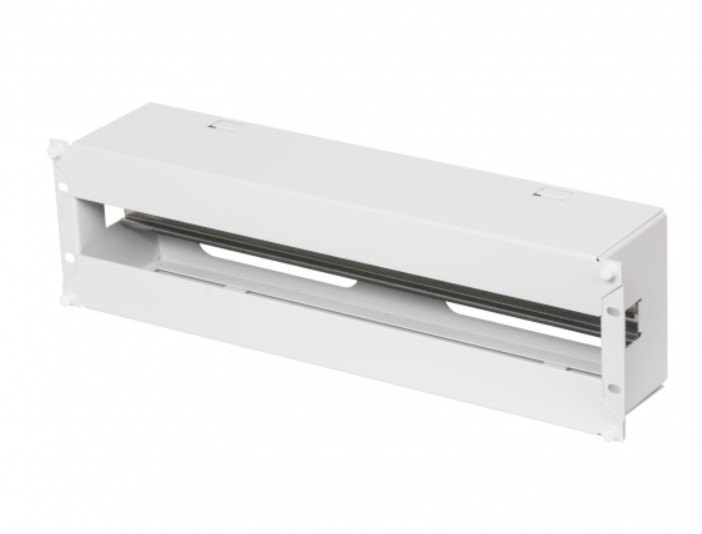 Панель 19" с DIN-рейкой, 3U предназначена для организации ввода внешнего электропитания в шкафы и стойки. Позволяет разместить до 25 автоматов шириной 17,5 мм электропитания по стандарту DIN 43880. Панель 19" с DIN-рейкой, 3U состоит из корпуса с установленной в нём DIN-рейкой длиной 443 мм и двух легкосъёмных крышек, установленных сверху и снизу. Корпус на торцах имеет крепёжные отверстия для монтажа панели на 19” направляющих. Сзади корпуса выполнены 4 паза (150х32 мм) для подвода-вывода кабелей. На передней части панели сверху и снизу установлены легкосъёмные крышки на защёлках. Конструкция позволяет беспрепятственно осуществлять выводы кабелей.