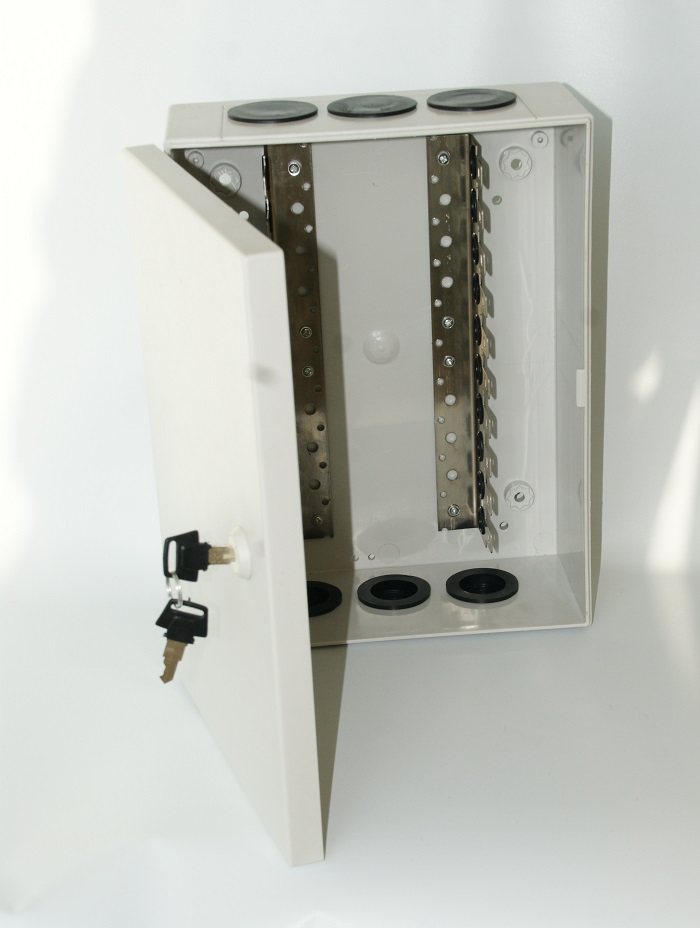 Основное назначение всех распределительных боксов – защита узла коммутации от внешних воздействий и несанкционированного доступа. Кронштейны в боксах предназначены для установки 10-парных плинтов типа KRONE. Боксы NIKOMAX для 3-х, 5-ти и 10-ти плинтов выполнены из качественного пластика и снабжены кронштейнами для установки плинтов. Бокс NMC-WBPL10-PK для 10-ти плинтов также имеет прорезиненные кабельные вводы, что дает лучшую защиту от влаги и пыли.