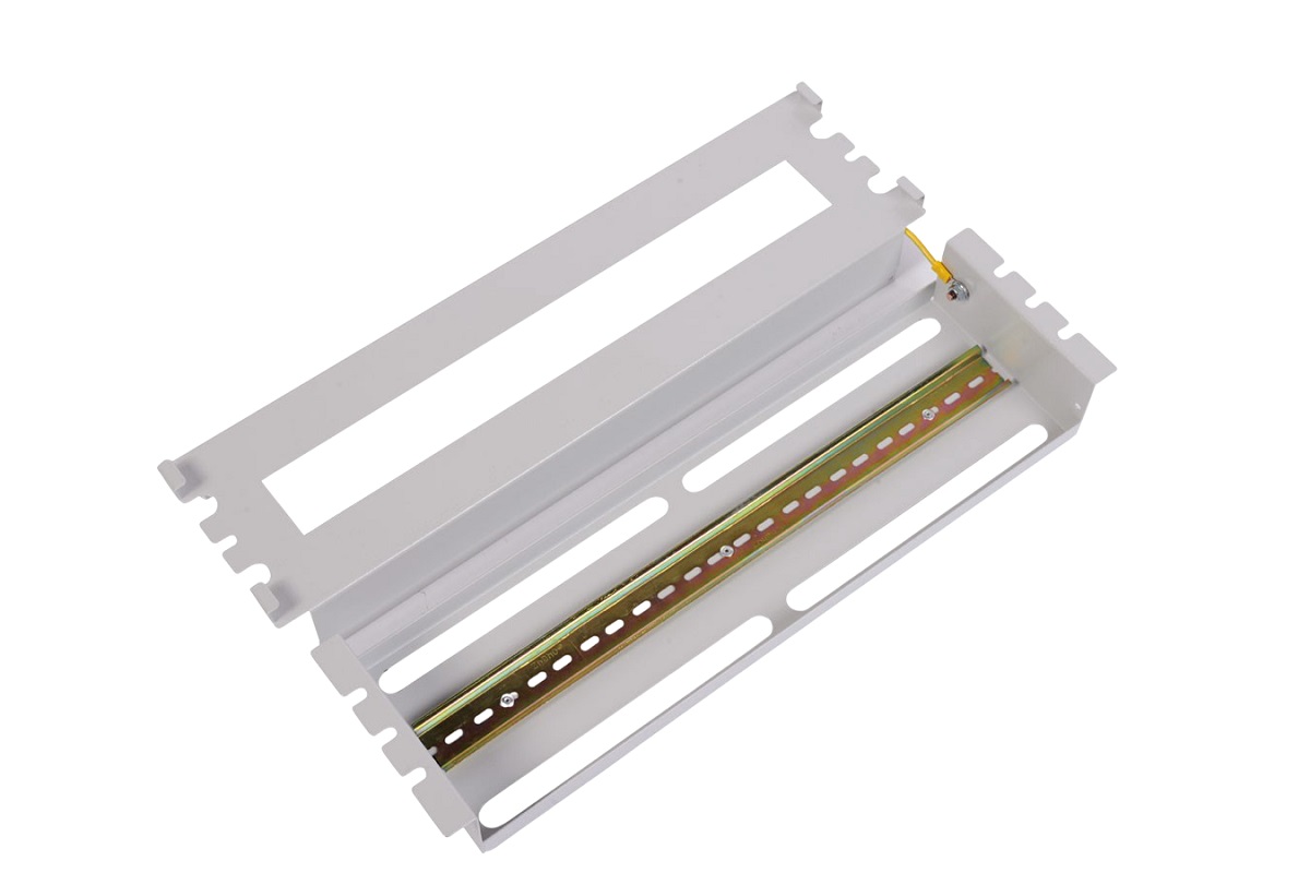 Панель для установки электротехнического оборудования по DIN 43880. Имеет металлический корпус со съемной передней крышкой. В задней части панели предусмотрены четыре кабельных ввода - 200х15мм. Максимальное количество устанавливаемых модулей типа S (ширина 17,5 мм) - 22 шт. Панель совместима со всеми линейками 19” оборудования. Поставляется в индивидуальной упаковке.