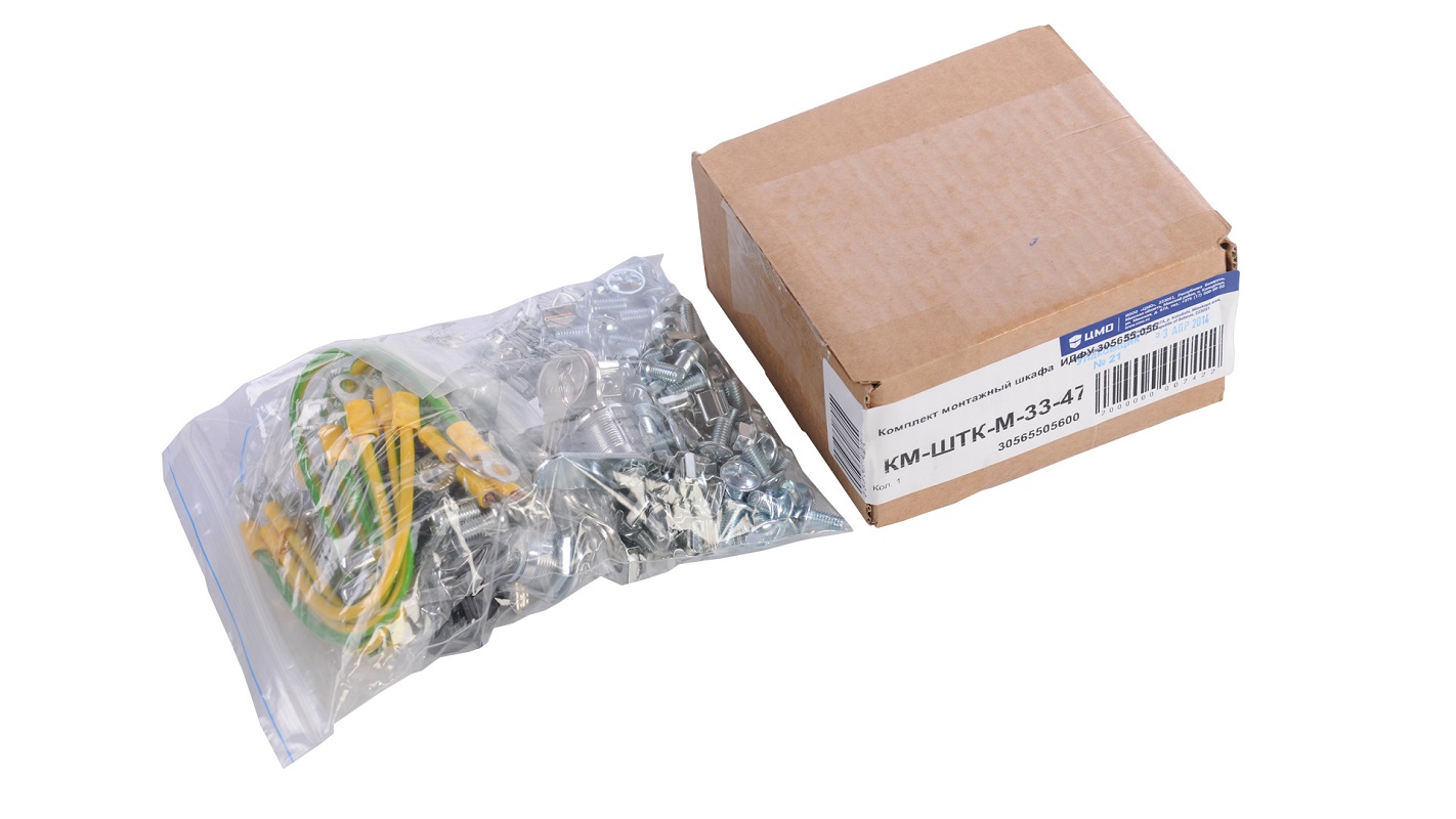 КМ-ШТК-М-33-47 Комплект монтажный шкафа ШТК-М высотой 33U - 47U, комплектация: комплект проводов заземления ШТК-М - 1шт, винт с буртиком WP M6x12 KB - 88 шт, гайка зубчатая N6KZ M6 B - 10 шт, гайка М6 с защелкой BN3307 - 54 шт, шайба пружинная зубчатая 981/6-SPR ZZ B - 16 шт, демпфер - 16 шт, замок EuroLock - 6 шт, защелка MS725-2 - 4 шт, сборочный чертеж -1 шт.