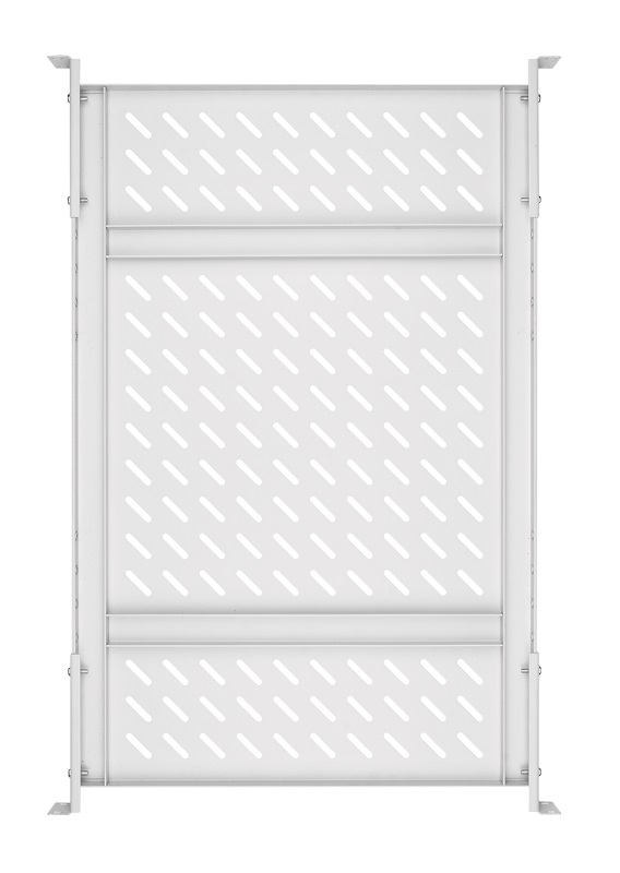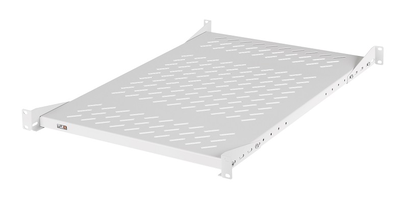 Усиленная стационарная полка предназначена для установки или поддержки тяжелого оборудования в напольных телекоммуникационных шкафах и стойках. Снизу полка укреплена продольными и поперечными усиливающими ребра. Поверхность полки имеет перфорацию для лучшей вентиляции оборудования. Крепление осуществляется на двух парах 19" направляющих в четырех точках. Полка устанавливается в напольные шкафы и стойки в соответствии с таблицей совместимости аксессуаров.