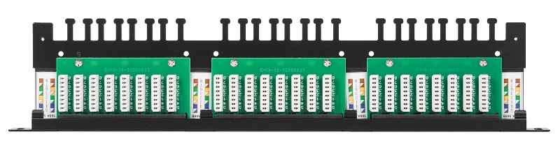 Коммутационные панели (патч-панели) предназначены для монтажа кабелей в различных подсистемах СКС и подключения отдельных составляющих сети друг к другу при помощи коммутационных шнуров. Панели высокой плотности NMC-RP24UD2-HU-BK (кат.5е) выполнены в неэкранированных корпусах и предназначены для монтажа в 19” шкафы или стойки. Данные панели вмещают по 24 порта RJ45/8P8C при высоте всего 0,5U. Такое решение идеально, когда необходимо обеспечить высокую плотность портов (например, в дата-центрах) или для расширения сети в ограниченном пространстве шкафа. Универсальные IDC контакты 110/KRONE расположены с тыльной стороны панелей, на горизонтальной подложке. Разводка кабелей на патч-панелях производится по двум стандартам: T568 А и B. Предусмотрен встроенный органайзер для надежного закрепления кабелей.