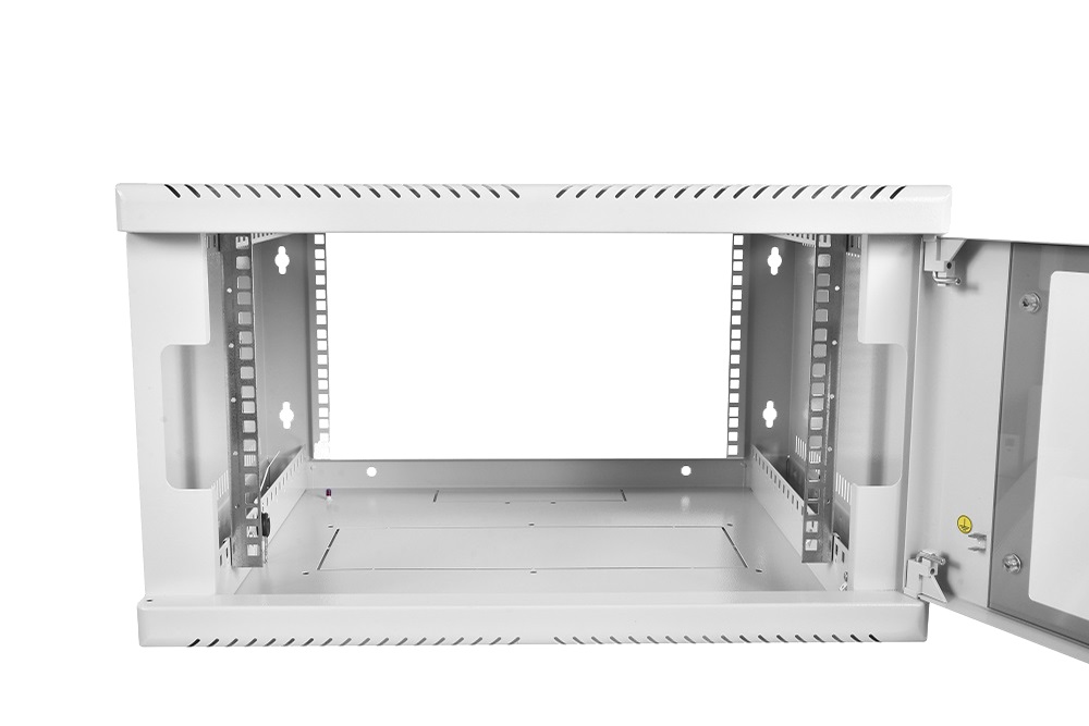 Настенный шкаф 19" ШРН имеет цельнометаллическую сварную конструкцию, он удобен для быстрой установки и монтажа оборудования, так как не требует сборки. Отсутствие острых углов с фронтальной стороны повышают безопасность при эксплуатации и обслуживании шкафов, что помогает исключить человеческие травмы при соприкосновении со шкафом. Возможна комплектация дверью с тонированным ударопрочным стеклом, сплошной металлической дверью. Новая конструкция стеклянной двери с механическим креплением стекла увеличивает её жесткость, и обеспечивает легкую замену стекла при его повреждении. Возможна установка двери, как с правой, так и с левой стороны. Новый усиленный точечный замок с поворотной ручкой увеличивает жесткость фиксации двери в закрытом положении и защиту от несанкционированного доступа, а также обеспечивает удобство при её открывании.