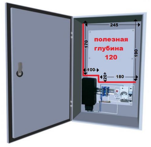 Внутренние габариты с учетом пенополистирола и монтажной панели мм (ШхВхГ): 245х340х120