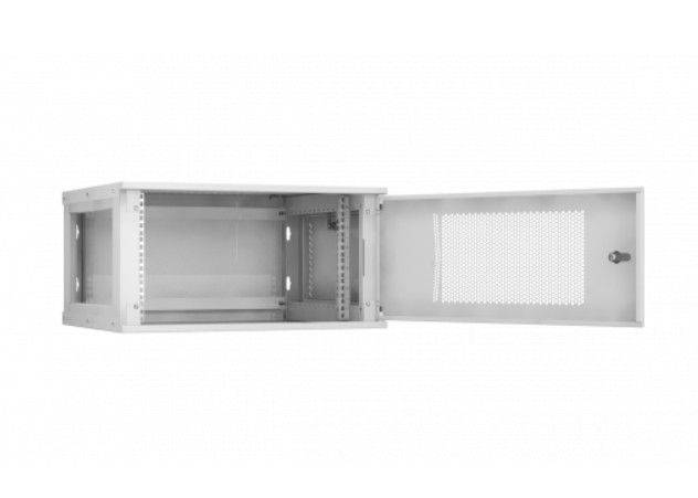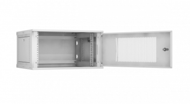 Шкаф телекоммуникационный 19" настенный; разборный 6U, полезная глубина 390мм, распределенная нагрузка до 60 кг, дверь стекло, съемные боковые стенки с замком, цвет серый, IP 20, 370х600х450 мм.