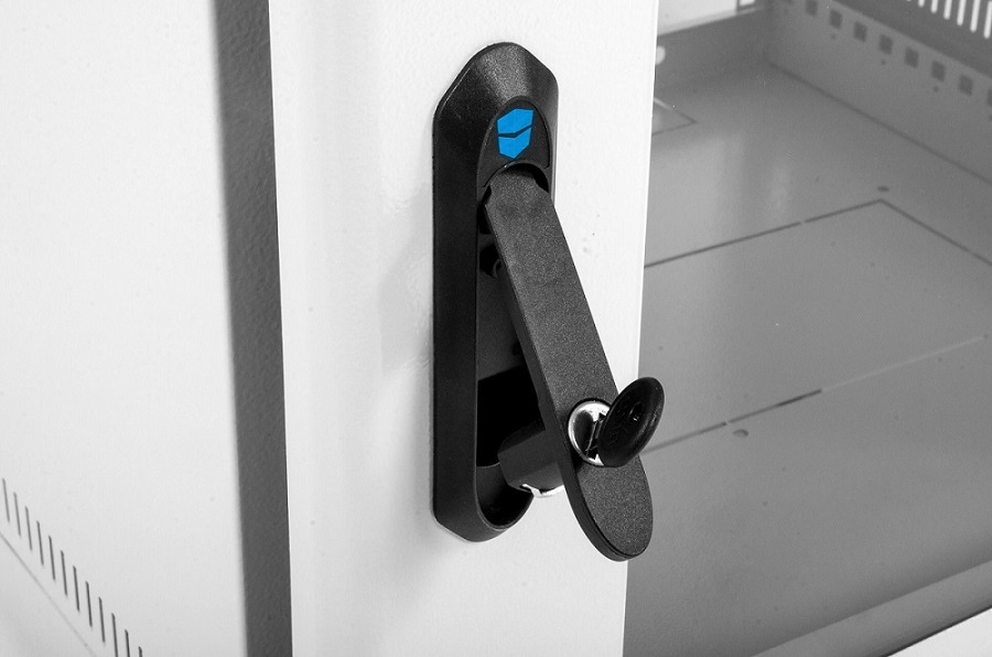 Настенный шкаф 19" ШРН имеет цельнометаллическую сварную конструкцию, он удобен для быстрой установки и монтажа оборудования, так как не требует сборки. Отсутствие острых углов с фронтальной стороны повышают безопасность при эксплуатации и обслуживании шкафов, что помогает исключить человеческие травмы при соприкосновении со шкафом. Возможна комплектация дверью с тонированным ударопрочным стеклом, сплошной металлической дверью. Новая конструкция стеклянной двери с механическим креплением стекла увеличивает её жесткость, и обеспечивает легкую замену стекла при его повреждении. Возможна установка двери, как с правой, так и с левой стороны. Новый усиленный точечный замок с поворотной ручкой увеличивает жесткость фиксации двери в закрытом положении и защиту от несанкционированного доступа, а также обеспечивает удобство при её открывании.