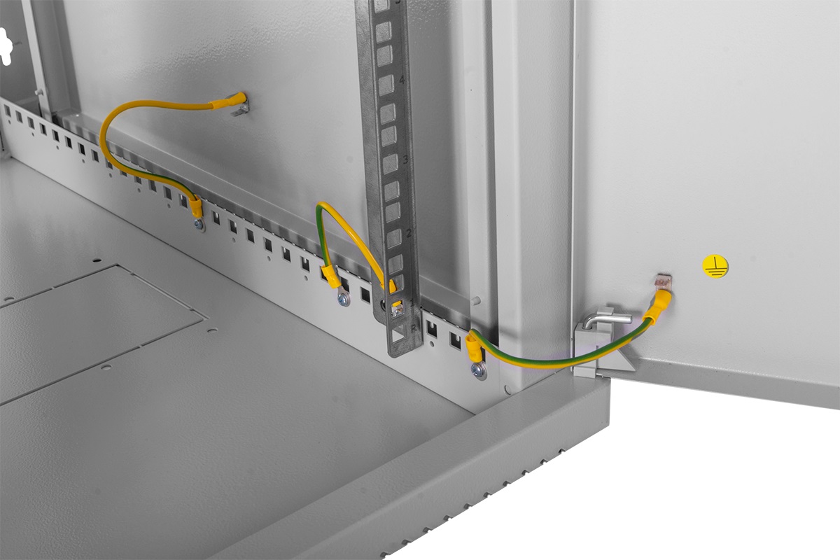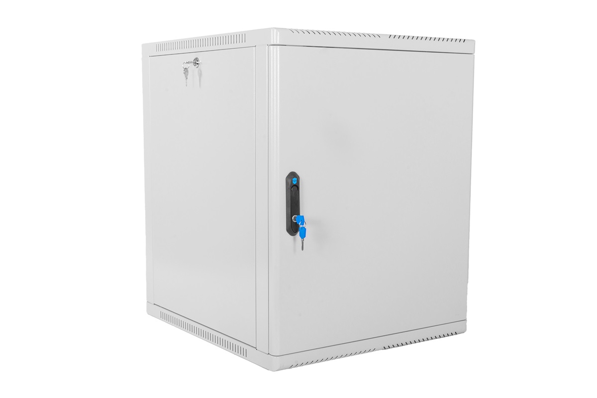 Настенный шкаф 19" ШРН имеет цельнометаллическую сварную конструкцию, он удобен для быстрой установки и монтажа оборудования, так как не требует сборки. Отсутствие острых углов с фронтальной стороны повышают безопасность при эксплуатации и обслуживании шкафов, что помогает исключить человеческие травмы при соприкосновении со шкафом. Комплектация со сплошной металлической дверью. Новая конструкция стеклянной двери с механическим креплением стекла увеличивает её жесткость, и обеспечивает легкую замену стекла при его повреждении. Возможна установка двери, как с правой, так и с левой стороны. Новый усиленный точечный замок с поворотной ручкой увеличивает жесткость фиксации двери в закрытом положении и защиту от несанкционированного доступа, а также обеспечивает удобство при её открывании.