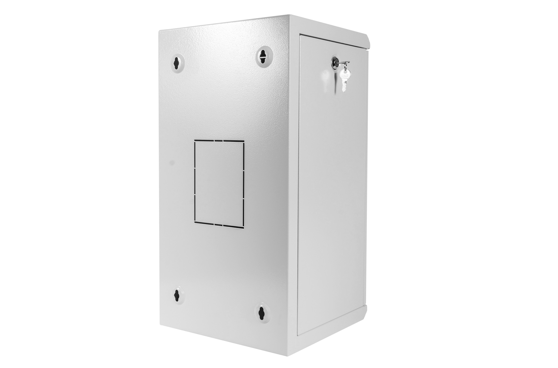 Шкаф имеет цельнометаллическую сварную конструкцию. Удобен для быстрой установки и монтажа оборудования, так как не требует сборки. Съемные боковые панели фиксируются точечными замками. При монтаже возможен доступ к оборудованию с трех сторон. Комплектуется дверью с тонированным стеклом. Возможна установка двери, как с правой, так и с левой стороны. Дверь фиксируются точечным замком.