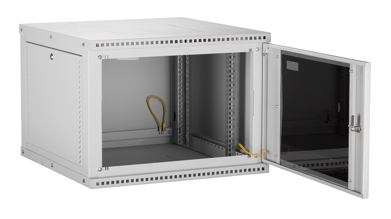 Настенные шкафы серии Lite (TWI) — это рациональное решение для размещения малых объемов телекоммуникационного оборудования, внутри жилых, офисных и производственных помещений. Настенные шкафы используют там, где применение напольных шкафов нецелесообразно. Например, при ограниченной площади помещения или при организации ЛВС с небольшим количеством рабочих мест. Особенностью настенных шкафов серии TWI является: надежная сборная конструкция, для удобства траспортировки, наличие съемных боковых стенок, двери с большим углом открытия позволяют при необходимости осуществлять доступ к оборудованию с трех сторон. Сборно-разборная конструкция шкафа, состоящая из малого набора конструктивных элементов обеспечивает надежный конструктив и простоту сборки. Крепление шкафа к стене осуществляется через монтажные отверстия в задней стенке шкафа. (Крепеж не входит в комплект поставки). Дверь шкафа снабжена замком и может быть выполнена из стального листа с перфорацией или со вставкой из ударопрочного, тонированного в массе стекла. Имеется возможность навесить дверь с правой или с левой стороны. Угол открытия двери — 180 градусов. Для дополнительного удобства монтажа и обслуживания устанавливаемого оборудования, конструкцией предусмотрены легкосъемные боковые стенки, в закрытом положении фиксируются замками. Для установки оборудования стандарта 19", шкаф оснащен одной парой монтажных направляющих в комплекте с юнитовой наклейкой (шкаф глубиной 600 мм оснащается двумя парами монтажных направляющих). Глубину установки оборудования на монтажных направляющих внутри шкафа можно изменять с шагом 25 мм. Перфорация шкафа обеспечивает хорошую вентиляцию установленного оборудования. Возможна установка вентиляторного блока в крышу и основание шкафа, для этого предусмотрены выламываемые заглушки. В шкаф глубиной 350 мм устанавливаются вентиляторные блоки с 1-м вентилятором, а в шкаф глубиной 450 и 600 мм устанавливаются вентиляторные блоки с 2-я вентиляторами. Имеется по 1-му кабельному вводу в крыше и в основании шкафа, выполнены они в виде прямоугольных выламываемых заглушек 270х56 мм. Все токопроводящие части шкафа заземлены между собой. Антикоррозионное покрытие выполнено ударопрочной порошковой краской. Шкаф выполнен в системе несущих конструкций серии 482,6 мм ГОСТ 28601-90 (19-дюймовому стандарту IEC 297). Максимальная допустимая распределенная нагрузка на шкаф серии TWI составляет 40 кг. Степень защиты шкафа составляет IP 20. Шкаф поставляется в разобранном виде, в одной коробке.