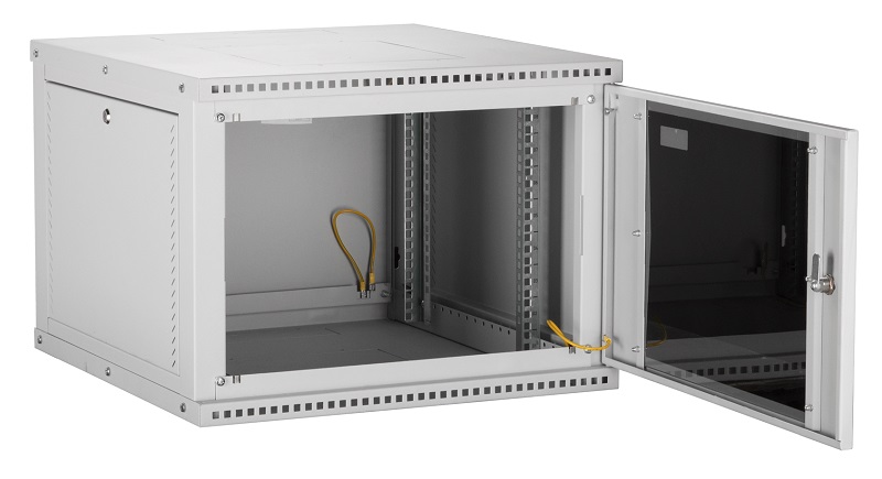 Настенные шкафы серии Lite (TWI) — это рациональное решение для размещения малых объемов телекоммуникационного оборудования, внутри жилых, офисных и производственных помещений. Настенные шкафы используют там, где применение напольных шкафов нецелесообразно. Например, при ограниченной площади помещения или при организации ЛВС с небольшим количеством рабочих мест. Особенностью настенных шкафов серии TWI является: надежная сборная конструкция, для удобства траспортировки, наличие съемных боковых стенок, двери с большим углом открытия позволяют при необходимости осуществлять доступ к оборудованию с трех сторон. Сборно-разборная конструкция шкафа, состоящая из малого набора конструктивных элементов обеспечивает надежный конструктив и простоту сборки. Крепление шкафа к стене осуществляется через монтажные отверстия в задней стенке шкафа. (Крепеж не входит в комплект поставки). Дверь шкафа снабжена замком и может быть выполнена из стального листа с перфорацией или со вставкой из ударопрочного, тонированного в массе стекла. Имеется возможность навесить дверь с правой или с левой стороны. Угол открытия двери — 180 градусов. Для дополнительного удобства монтажа и обслуживания устанавливаемого оборудования, конструкцией предусмотрены легкосъемные боковые стенки, в закрытом положении фиксируются замками. Для установки оборудования стандарта 19", шкаф оснащен одной парой монтажных направляющих в комплекте с юнитовой наклейкой (шкаф глубиной 600 мм оснащается двумя парами монтажных направляющих). Глубину установки оборудования на монтажных направляющих внутри шкафа можно изменять с шагом 25 мм. Перфорация шкафа обеспечивает хорошую вентиляцию установленного оборудования. Возможна установка вентиляторного блока в крышу и основание шкафа, для этого предусмотрены выламываемые заглушки. В шкаф глубиной 350 мм устанавливаются вентиляторные блоки с 1-м вентилятором, а в шкаф глубиной 450 и 600 мм устанавливаются вентиляторные блоки с 2-я вентиляторами. Имеется по 1-му кабельному вводу в крыше и в основании шкафа, выполнены они в виде прямоугольных выламываемых заглушек 270х56 мм. Все токопроводящие части шкафа заземлены между собой. Антикоррозионное покрытие выполнено ударопрочной порошковой краской. Шкаф выполнен в системе несущих конструкций серии 482,6 мм ГОСТ 28601-90 (19-дюймовому стандарту IEC 297). Максимальная допустимая распределенная нагрузка на шкаф серии TWI составляет 40 кг. Степень защиты шкафа составляет IP 20. Шкаф поставляется в разобранном виде, в одной коробке.