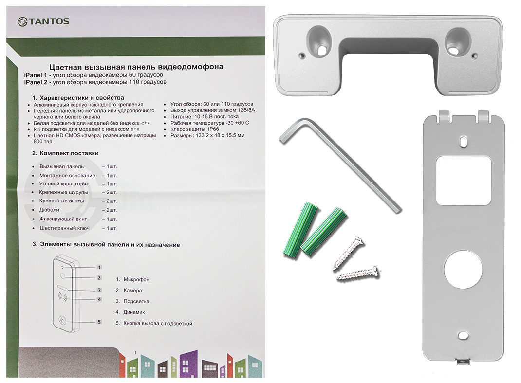 iPanel 2 (Metal) HD вызывная панель видеодомофона Tantos; AHD 1080p / 720p / CVBS (PAL); ИК, светодиодная, дистанция не менее 0,5м; угол обзора 110°; -25...+60°С; 133х48х20мм; IP66; 400 г.