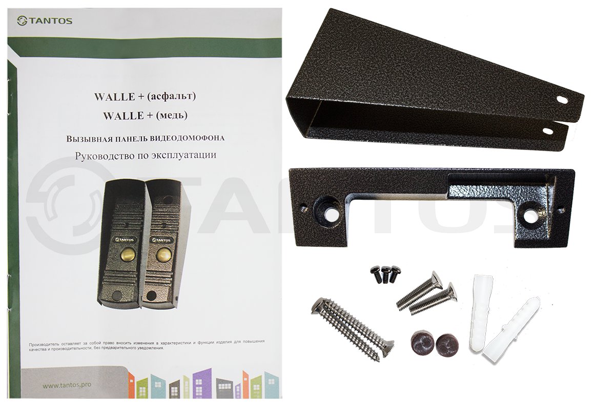 WALLE+ (медь) вызывная панель видеодомофона Tantos; накладная установка; разрешение 900 ТВЛ; PAL; 12В ± 1В пост. тока; ИК 940нМ; алюминий; реле замка 12В/2А; IP66; -40...+50С; 122x45x50.5 мм.