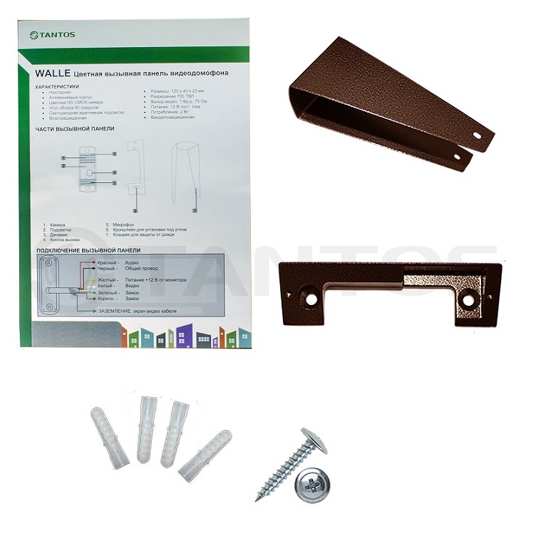 WALLE (Серебро) антивандальная вызывная панель Tantos; 700 твл. высококачественный звук; подсветка белая, светодиодная; стандартная четырех проводня схема подключения; 12В ± 1В пост. тока; -20...+50С; 40x120x23 мм.