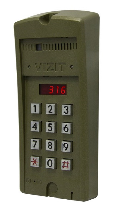 БВД-316F блок вызова для совместной работы с БУД-302 (М, К-20, К-80), БУД-430, БУД-485; встроенный считыватель ключей VIZIT-RF3 (13,56 МГц); дополнительная защита от несанкционированного администрирования; светодиодный дисплей; подсветка клавиатуры; рекомендуется использовать совместно с монтажным комплектом МК-311; ударопрочный; атмосферостойкий пластиковый корпус; -30...+45 °C; 90х180х28 мм.