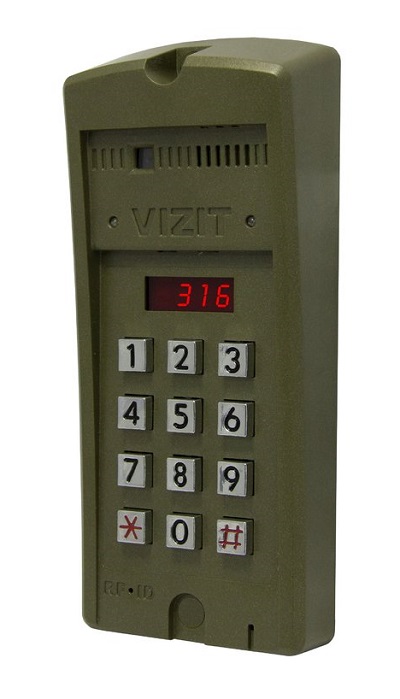 БВД-316FCP блок вызова для совместной работы с БУД-302 (М, К-20, К-80), БУД-430, БУД-485; встроенная телекамера цветного изображения с функцией "День-ночь" (700 ТВЛ, PAL, 0 Люкс, ИК подсветка, объектив PINHOLE 90°); встроенный считыватель ключей VIZIT-RF3 (13,56 МГц); дополнительная защита от несанкционированного администрирования; светодиодный дисплей; подсветка клавиатуры; рекомендуется использовать совместно с монтажным комплектом МК-311; ударопрочный; атмосферостойкий пластиковый корпус; -30...+45 °C; 77х179х36 мм.