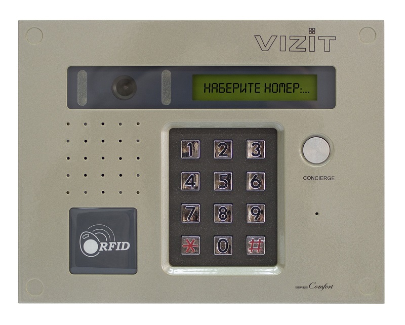 БВД-432FCB блок вызова для совместной работы с БУД-420M и БУД-420Р; врезная установка; встроенная телекамера цветного изображения с функцией "день-ночь" (700 ТВЛ, PAL, 0 Люкс, ИК подсветка, объектив BOARD 120°); встроенный считыватель ключей VIZIT-RF3 (13,56 МГц); дополнительная защита от несанкционированного администрирования; ЖК дисплей, кнопка "Консьерж"; рекомендуется использовать совместно с монтажным комплектом МК-432, MKF-432; 30...+45 °C; 190х150х40 мм.