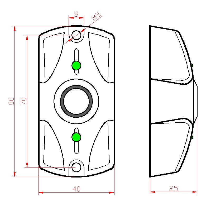 Считыватель имеет индикацию из двух светодиодов. Цвет индикации (красный/зеленый) меняется сменой полярности питания. При работе с контроллером CHECKist смена цветов подсветки считывателя происходит автоматически в соответствии с режимом работы контроллера.