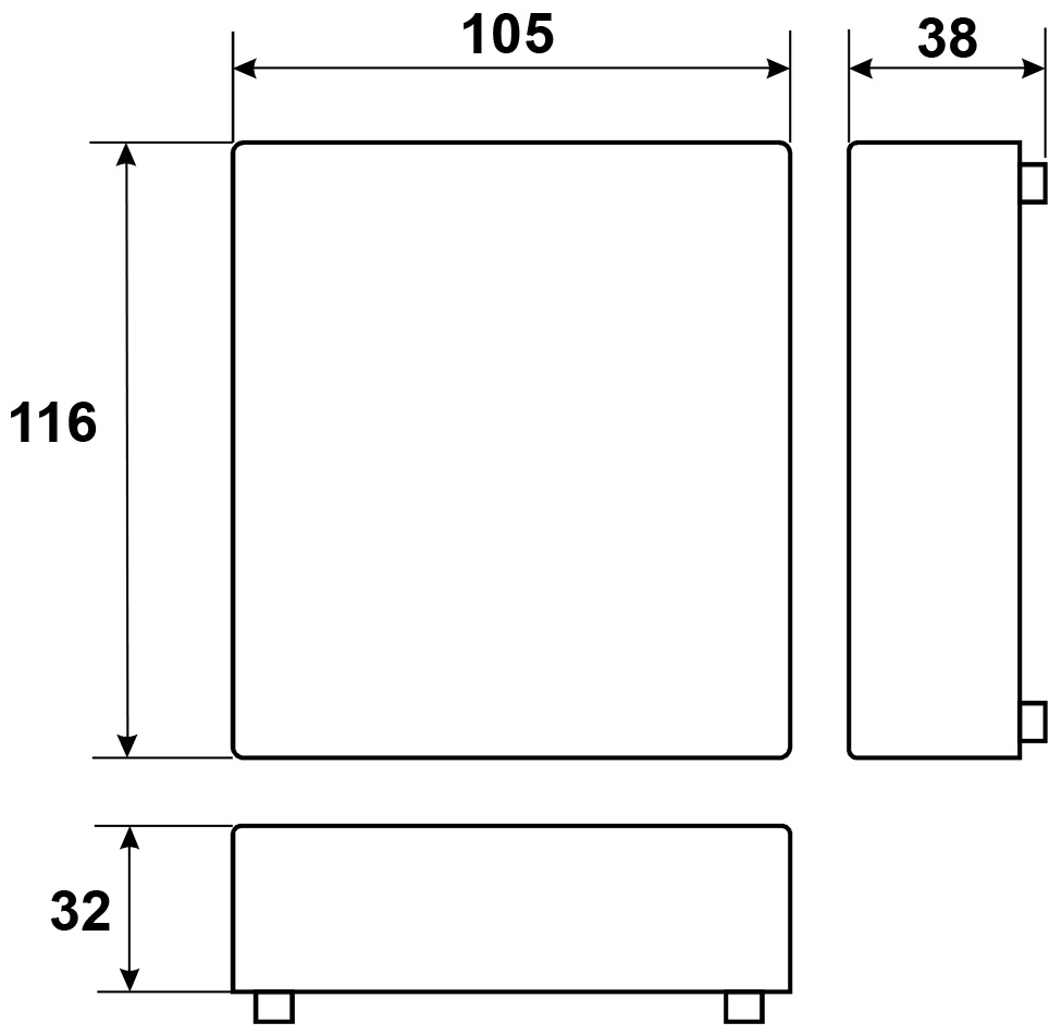 Габаритные размеры (мм): 116x104x37