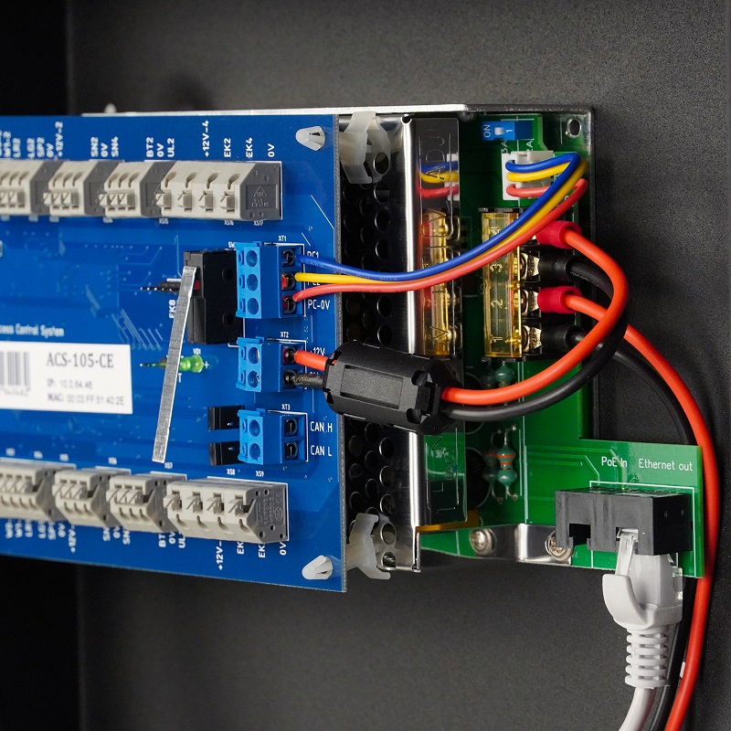 ACS-105-CE-BM (POE) контроллер со встроенным модулем PoE RusGuard; CAN-HS; 10/100 BASE-T; считыватели: RBus, Wiegand- 26-58, TouchMemory, интерфейс клавиатуры (PS\2, KBW), RS-232; настраиваемая полярность управления индикацией; IP20; металлический с тампером вскрытия; возможность установки аккумулятора 7Ач 12В с габаритами до 151х65х101мм (не входит в комплект поставки); от -40 до +50С; 172х256х84 мм; 2,3 кг.