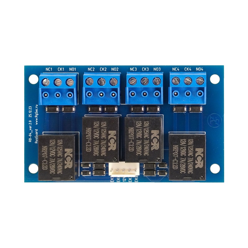 RB-04 модуль расширения RusGuard ; 4 реле на переключение; шлейф 0,2 м; 12В; 10А/30VDC, 10А/220VAC; 85х50х18 мм; 0,1 кг.